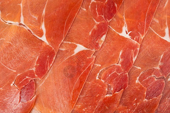 Now comes the most exciting part! Hold the long ham knife horizontally and use the whole blade length to gently and saw back and forth while slicing. Remember, it’s a “pull” motion, not a push—let the sharpness of the blade do the work. Ideal ham slices should be translucent, 4-6 centimeters long, each piece tipped with a perfect ring of white fat, which is the essence of the flavor!