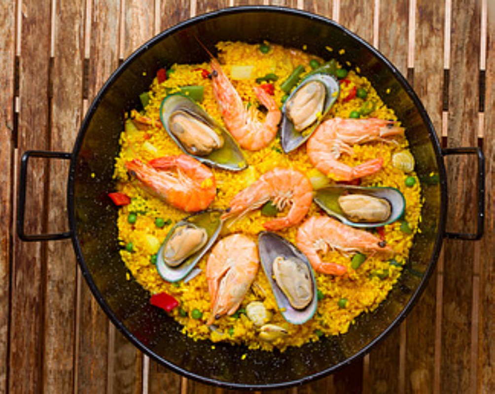 Making seafood paella with a rice cooker is actually much simpler than imagined. First, prepare the ingredients: 300g rice, 200g chicken thigh meat cut into pieces, 150g shrimp, 8-10 mussels, half an onion diced, 1 tomato peeled and diced, half a red bell pepper cut into strips, and 50g peas. For seasonings, you’ll need 3 tablespoons olive oil, 2 cloves minced garlic, a pinch of saffron, 500ml chicken broth, salt and black pepper to taste.